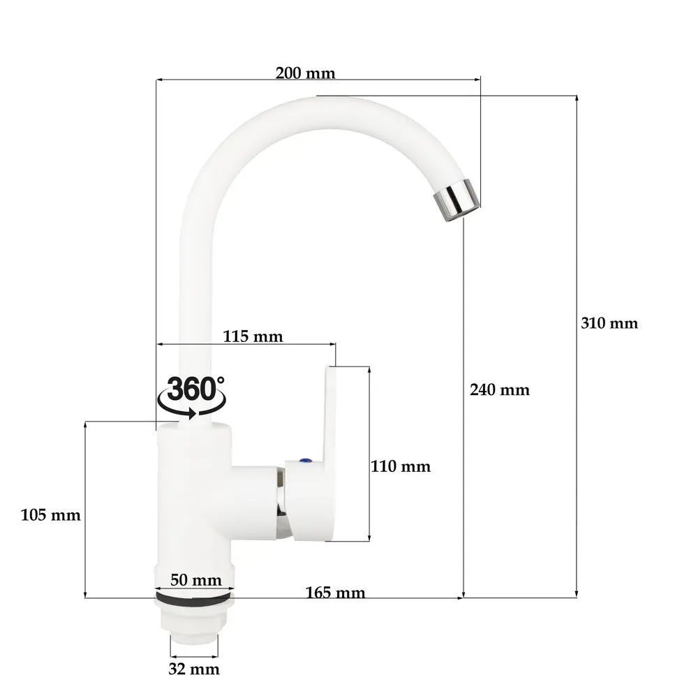 Смеситель для кухни монокомандный белый Potato Эверест B40-0467 купить в Ярославле по низкой цене с доставкой