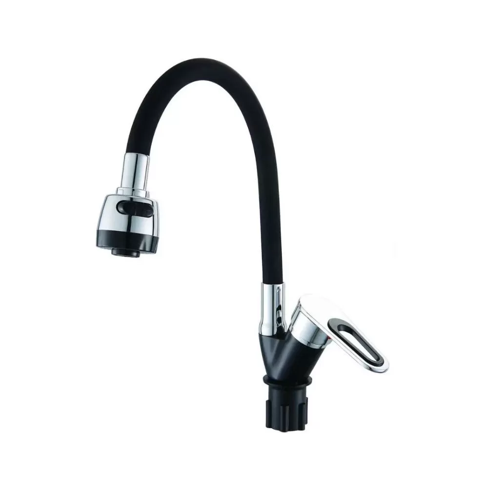 Смеситель для кухни монокомандный черный с хромом Potato Эверест B58-274F купить в Ярославле по низкой цене с доставкой