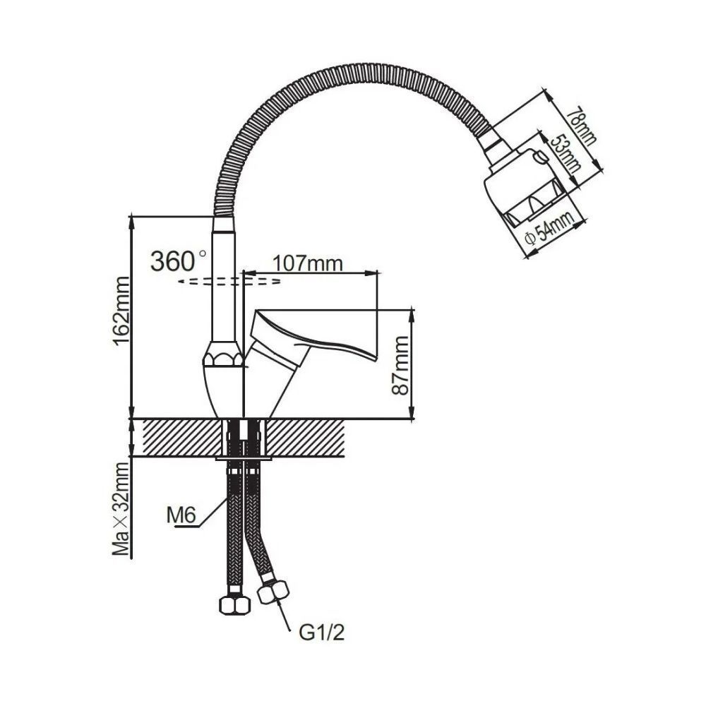 Смеситель для кухни монокомандный хром Potato Эверест B48-214M купить в Ярославле по низкой цене с доставкой