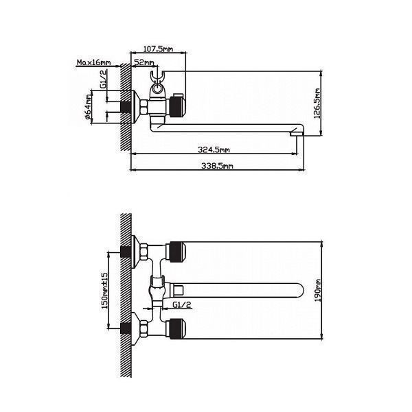 на два отверстия, настенные |