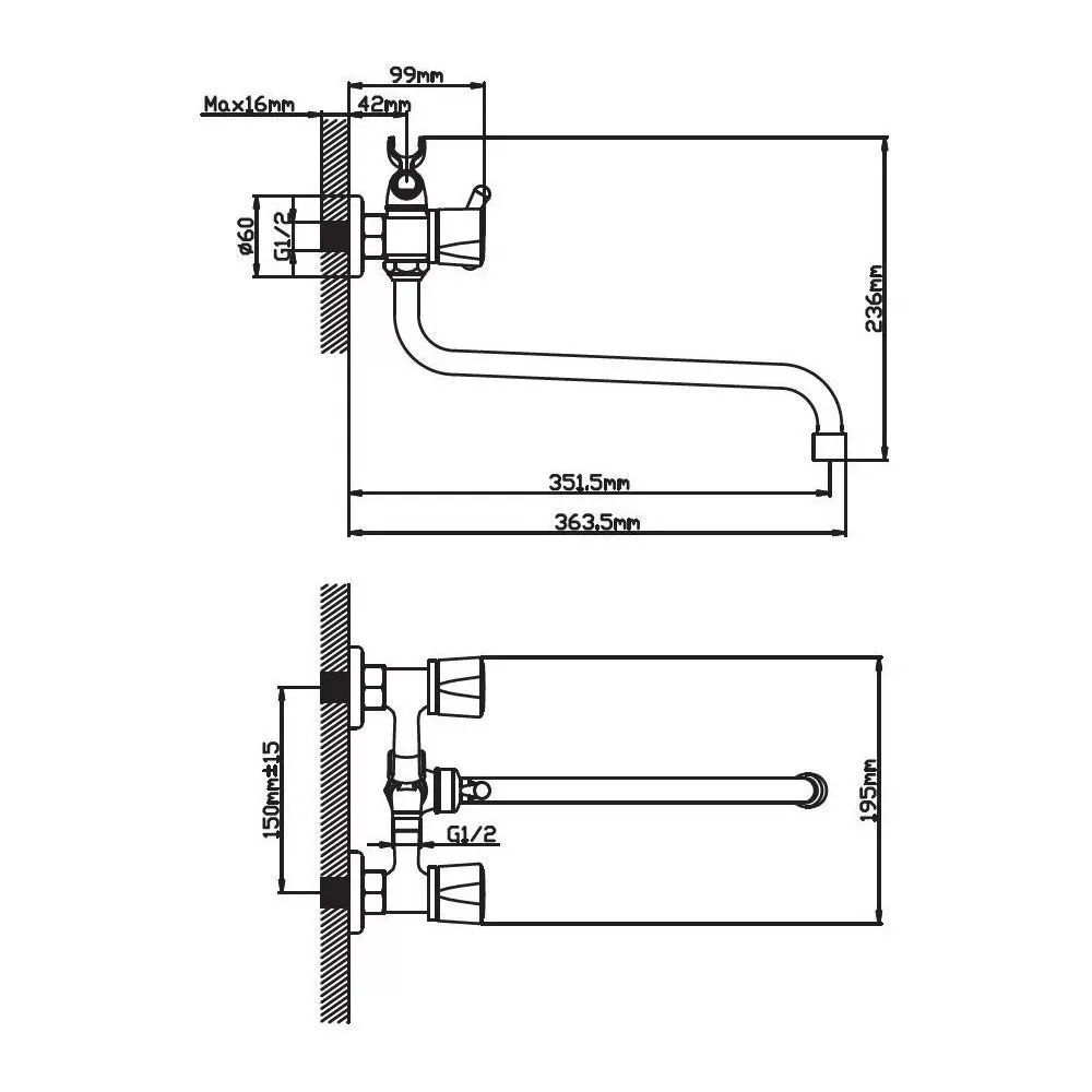 на два отверстия, настенные |